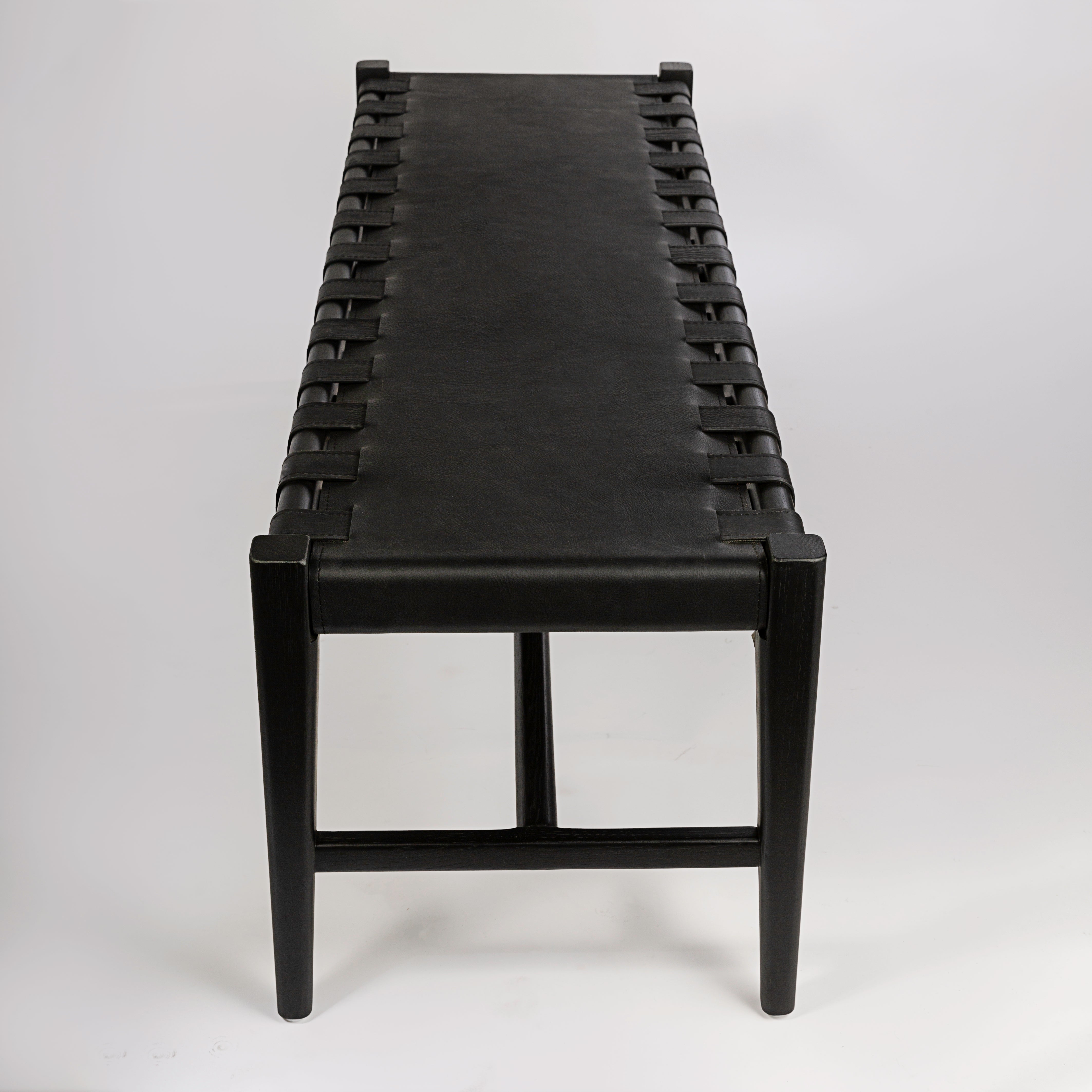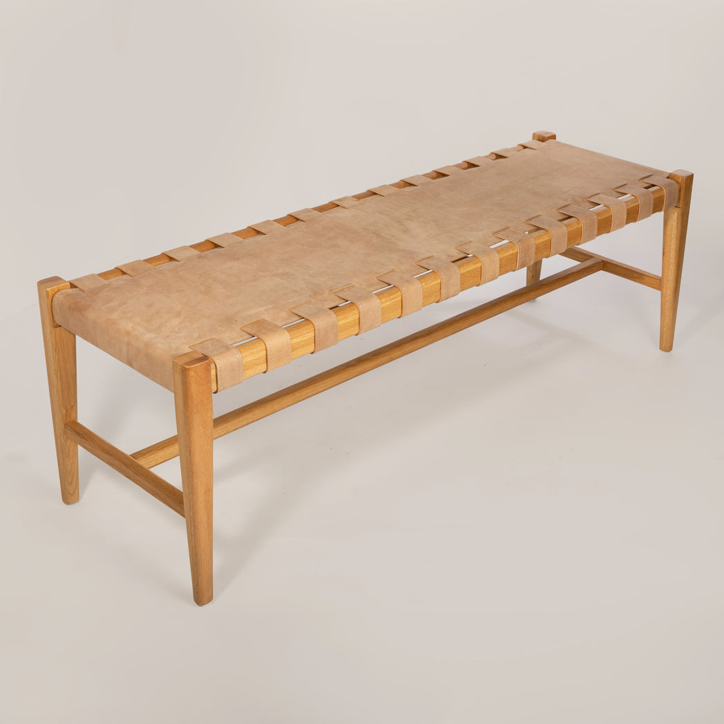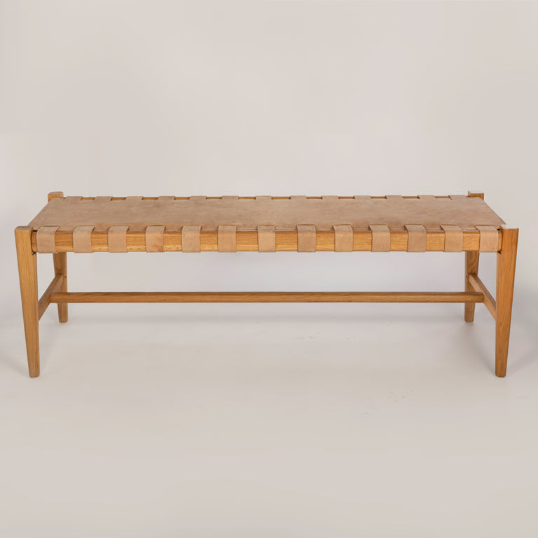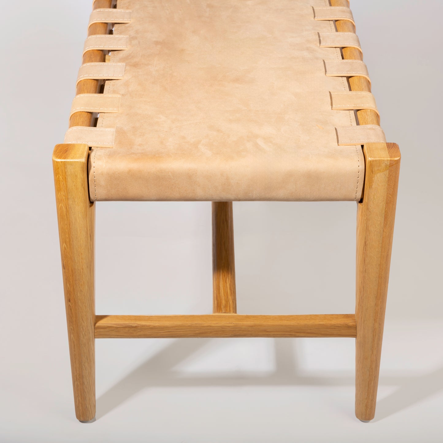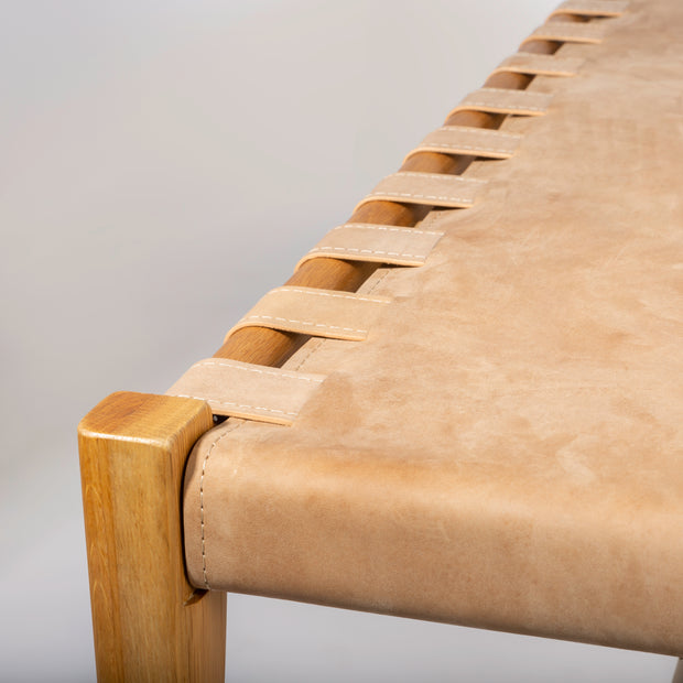 Our Pismo Leather Bench is handmade by our artisans, its structure is built from a strong American Oak wood frame, not to compare with other lower quality Teak wood chairs. It features high-quality thicker cow leather which will develop a gorgeous patina finish over time.