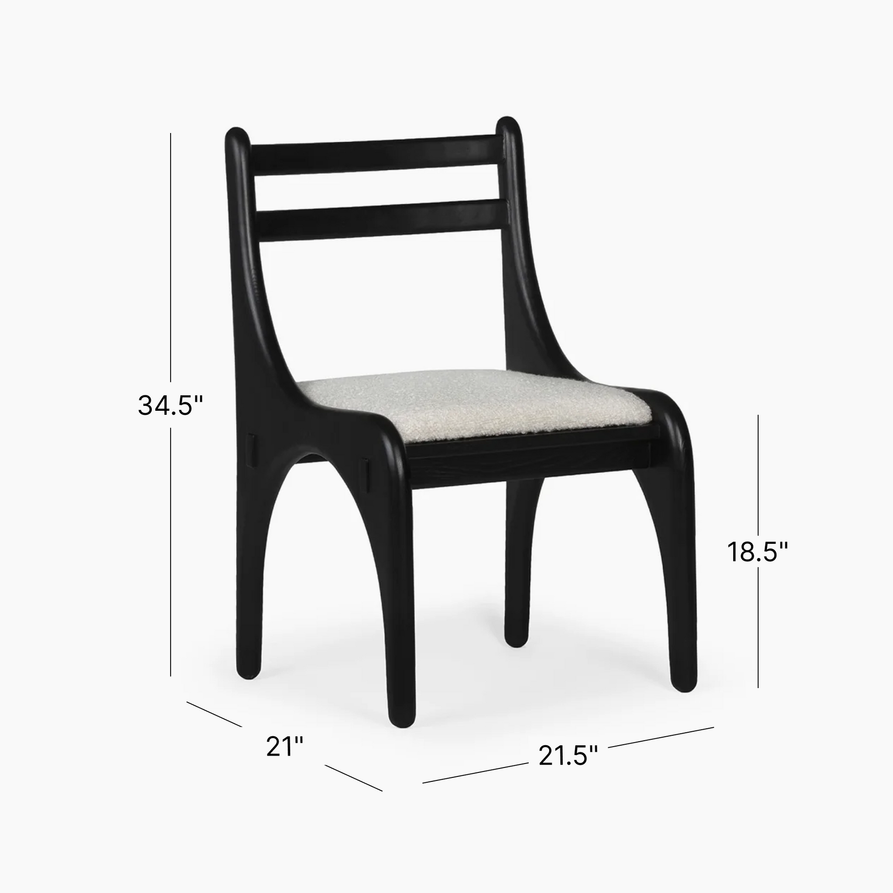 Inspired by arches from architectural landmarks, the Lia chair features dramatic geometry as both its structure and aesthetic. The FSC Certified, solid Oak frame supports a soft, boucle upholstered seat cushion.