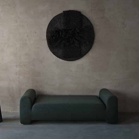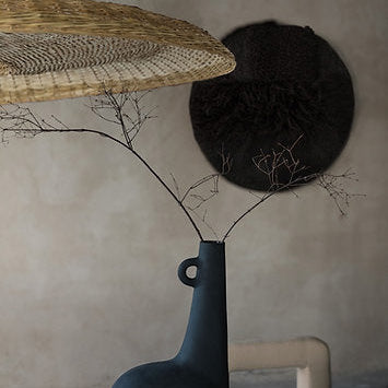 Each design piece handwoven on an ancient loom with the ancestral Ukrainian technique of lizhykarstvo, passed down from mother to daughter in the Carpathians, a mountainous region of Ukraine. Loosely woven stitching recalls the feeling of soft, crumbly soil. The nature of the tapestry and of earth herself intersect in a weaving process guided by nature.