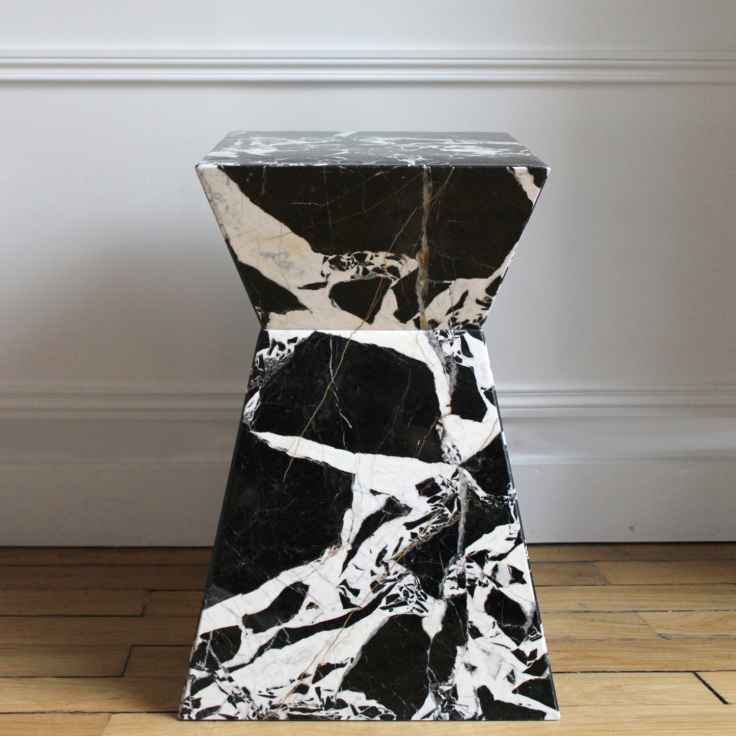 The ARIA table/stool is defined by its classic chic pyramid design. Its symmetry fits into any interior, classic or contemporary. This product is solid, and has an elegant silhouette. The ARIA piece can be used as a side table, bedside table, or stool.