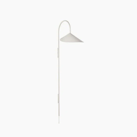 A taller version of the Arum Wall Lamp, this iteration has a slender silhouette, created from tubular, beige powder-coated metal that conceals a textile cord. A hybrid between a floor lamp and a wall light, the elegant beige/black design lends personality to a space, illuminating it with ambient light.