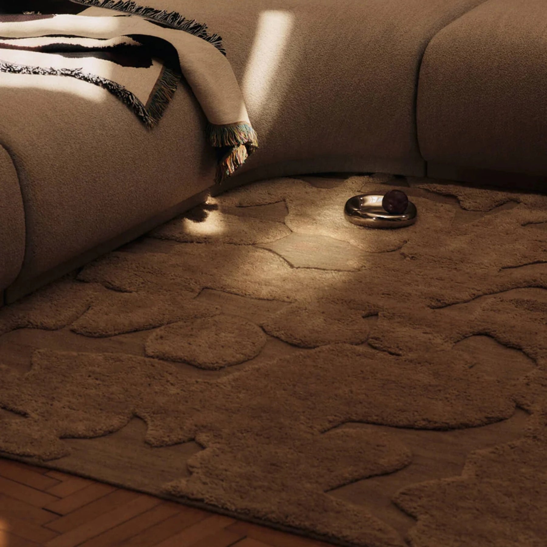 The Cilla Rug evokes a sense of fluid movement and botanical forms through its abstract floral design. Crafted from wool, the flat-woven base is accented with a hand-tufted pattern, creating a subtle two-height texture that adds depth and dimension. Natural variations in the wool bring richness and tactility to the surface. Each rug reflects the maker’s touch, skillfully blending tradition and artistry.