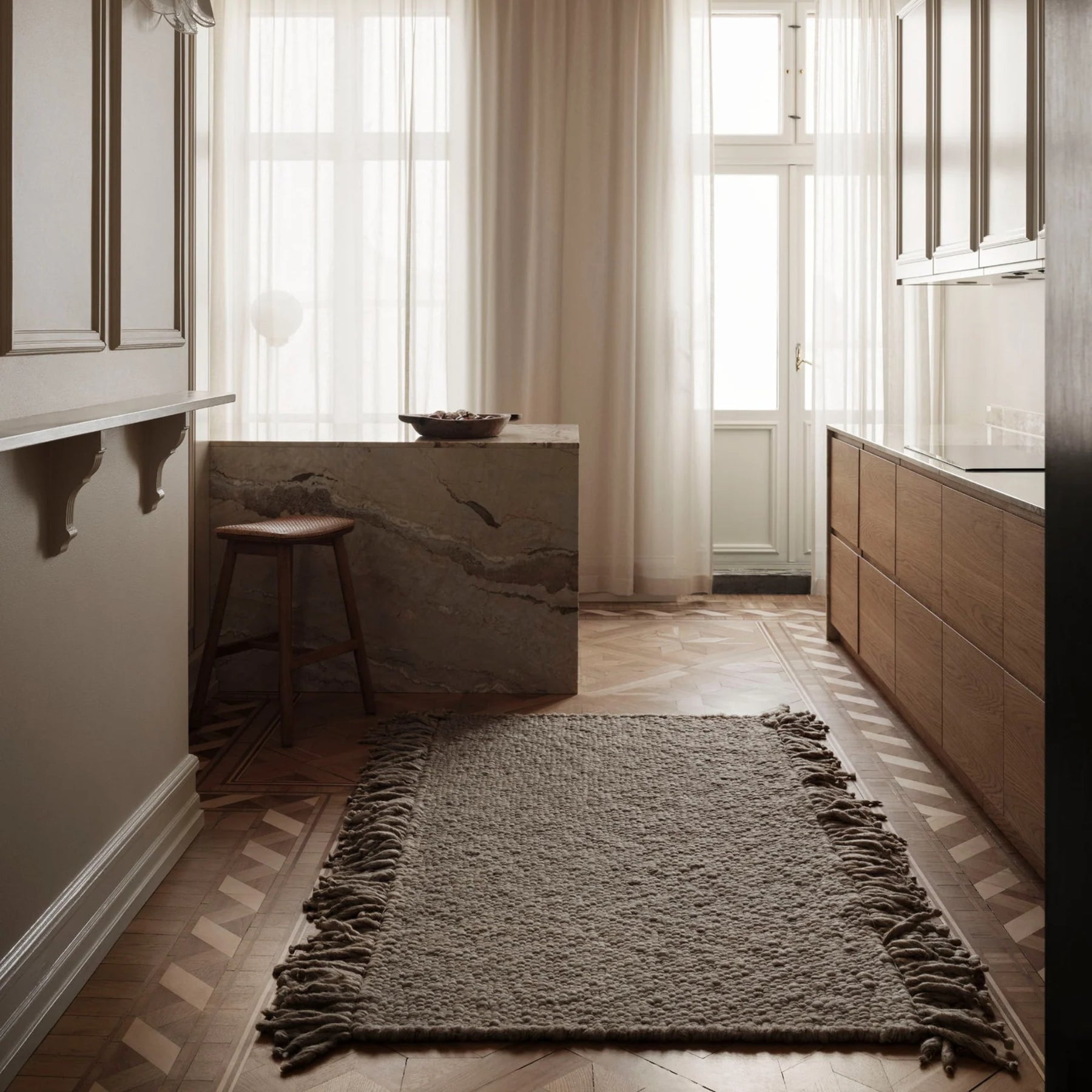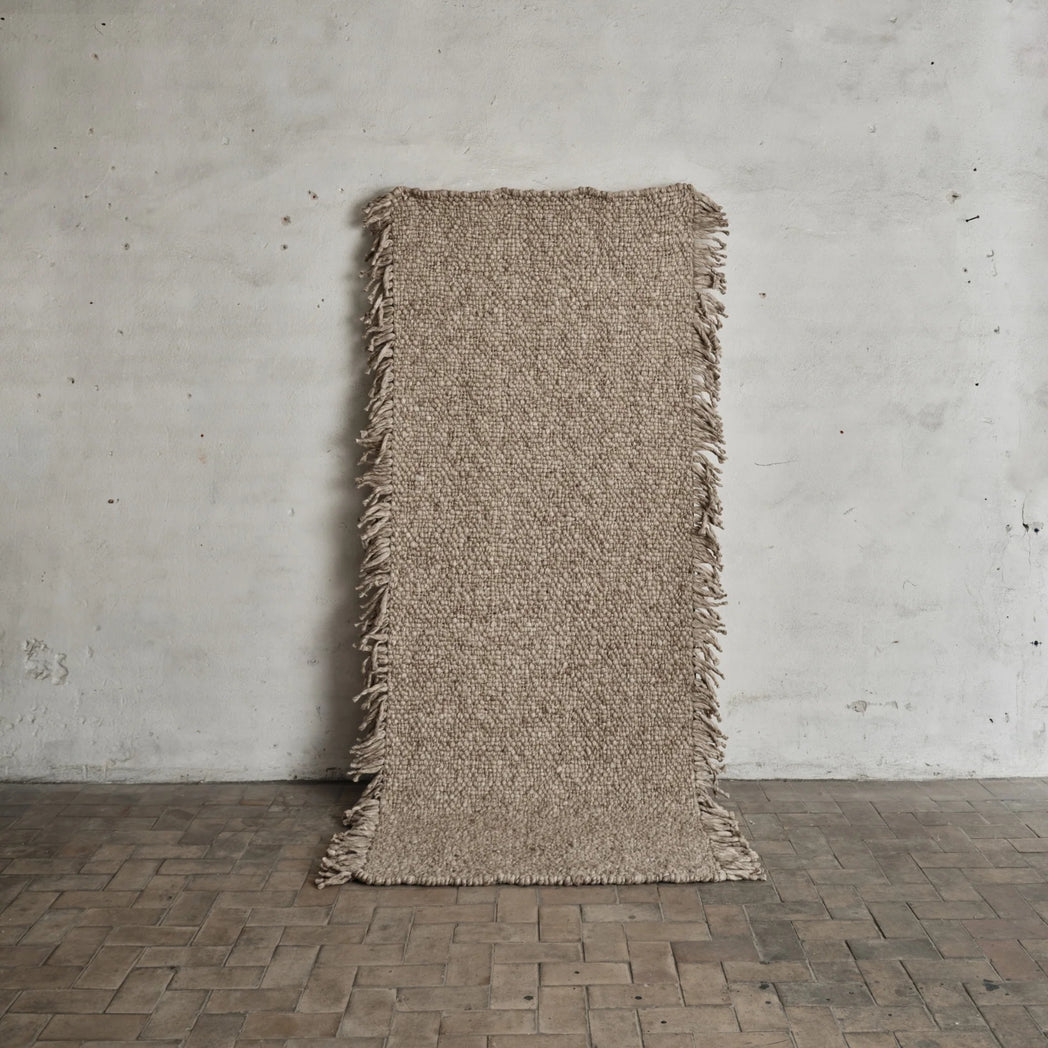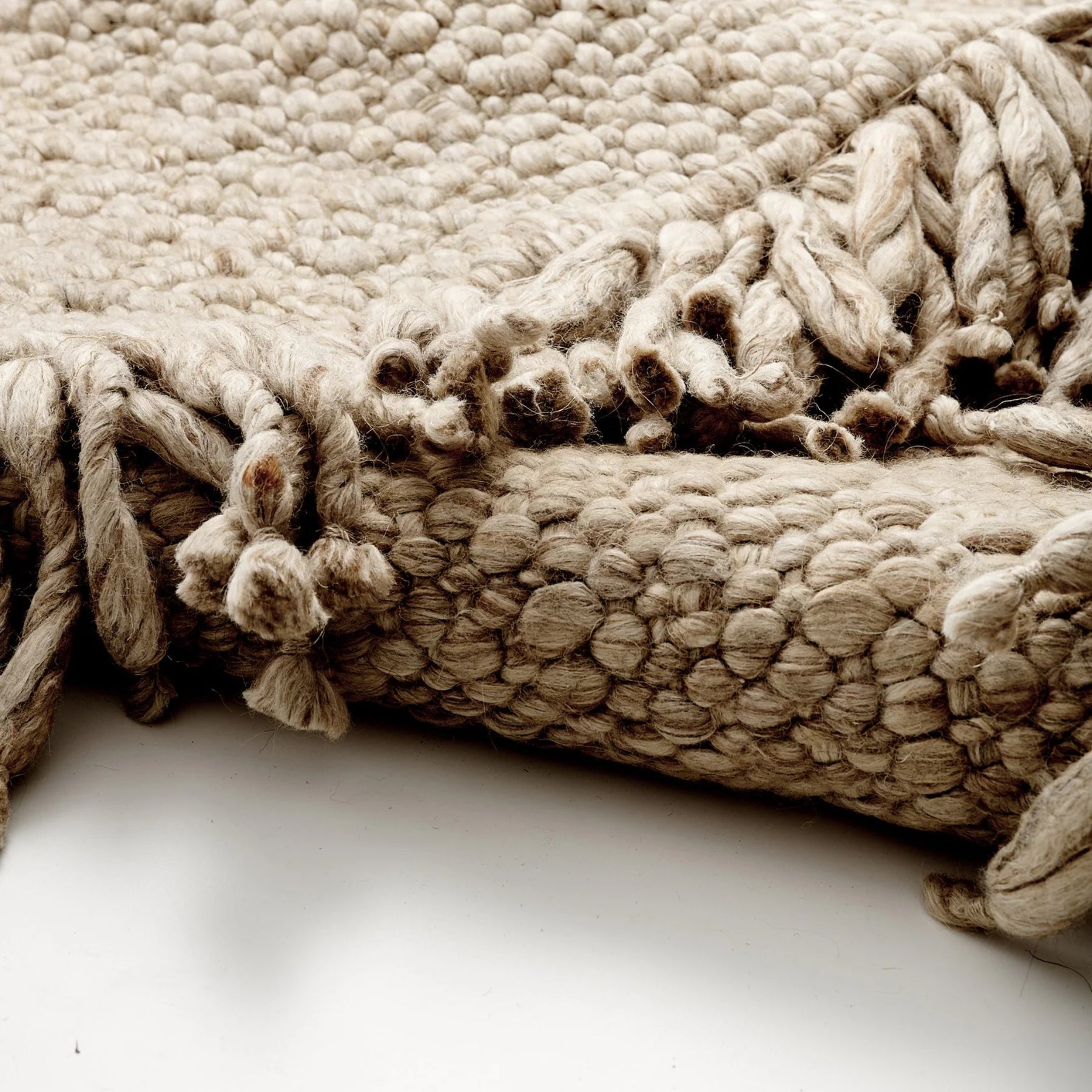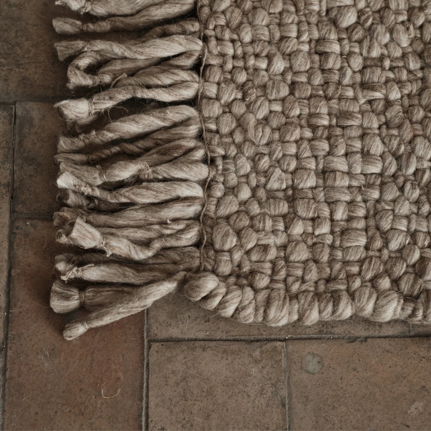 Colonnade no.03 is a compact, and rustic rug created in luxury chunky wool and woven in a classic basket weave construction with bold, over-dimensioned fringes.