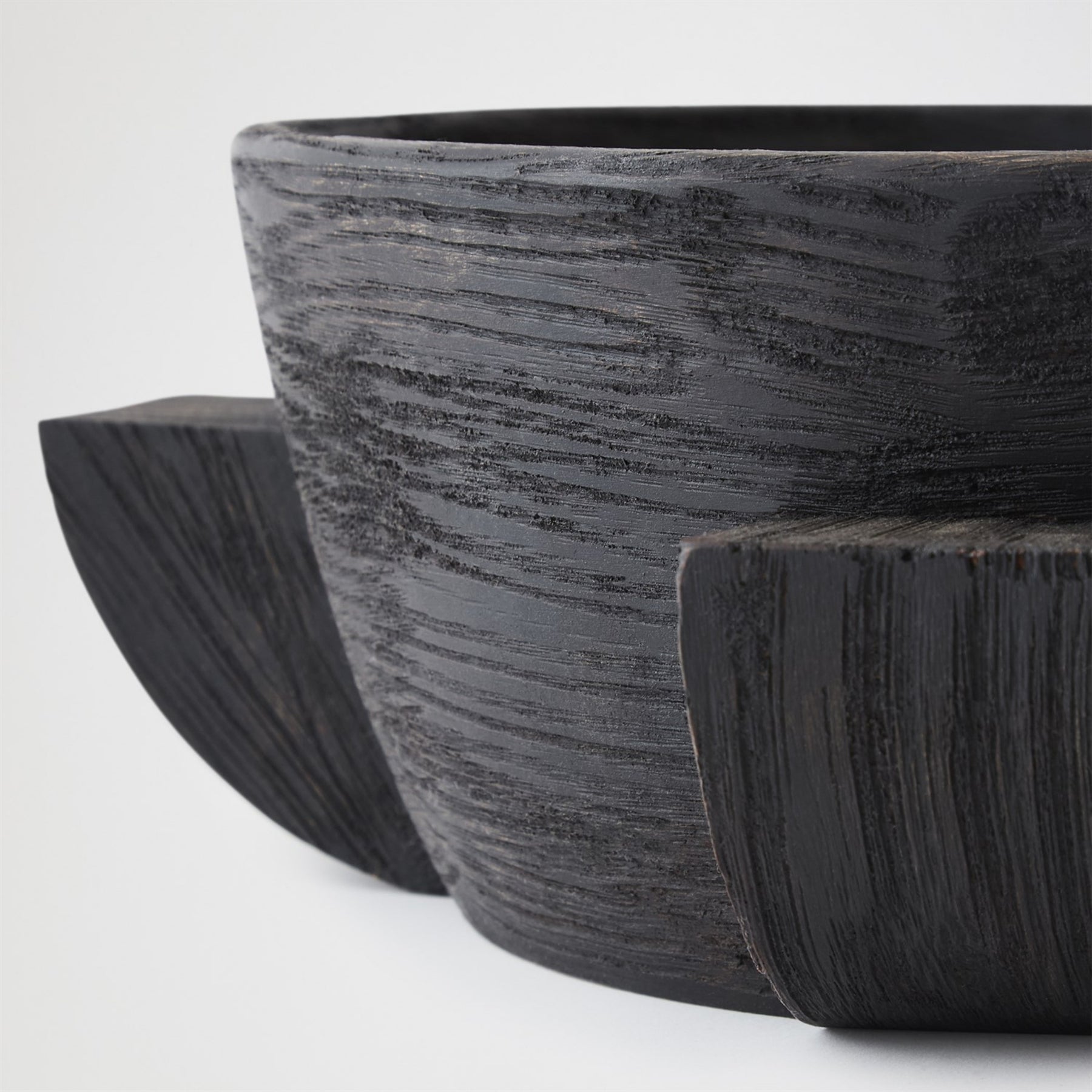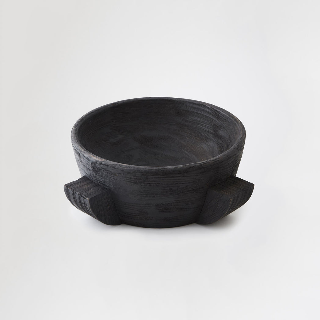 The Dome Bowl Collection in ebonized wood celebrates sculptural simplicity in rich, dark timber. Hand-carved from solid wood, each bowl and its base are carved as one continuous form. The dark finish amplifies its quiet form, emphasizing contour and craft. Whether round or elongated, these vessels bring warmth and grounded presence. A wooden bowl is never empty. It holds decades of growth, seasons of rain, the patience of living things.