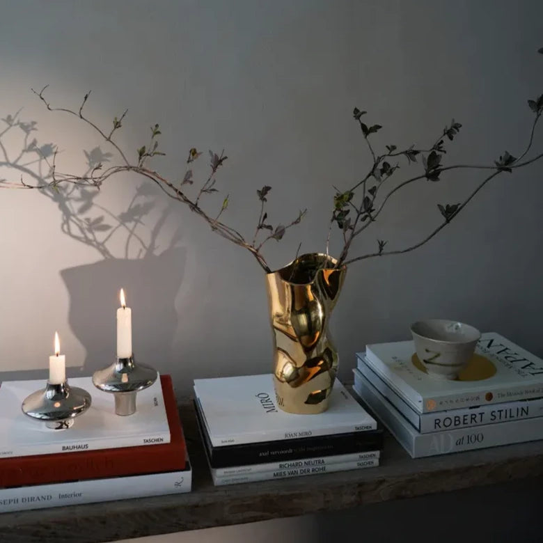 Special info: Made by hand sandcasting, small black spots and grain may occur due to the sand casting, polished by hand. Use with standard candles