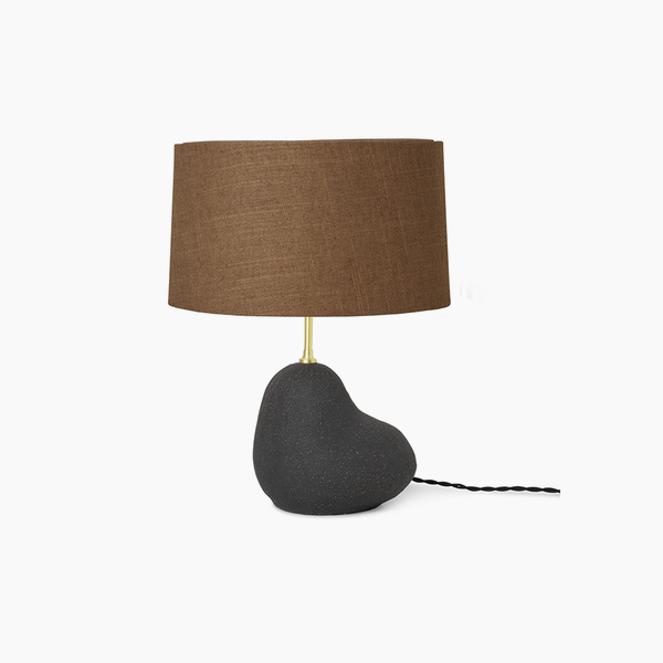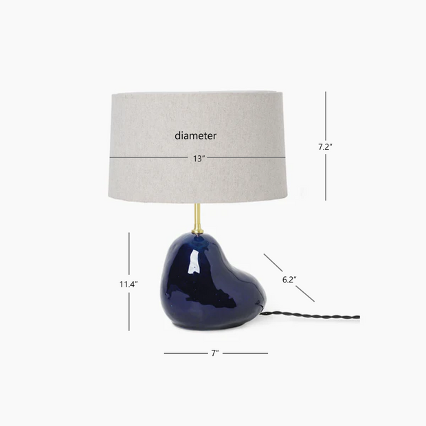 The Hebe Lamp is an organic lamp that can be used on the table or the floor. Initially sculpted by hand, the natural ceramic base contrasts with a more traditional stem and shade. Choose the Off-White or Black base for an earthier feel, or go with the Deep Blue for a more dramatic finish that beautifully reflects the light.