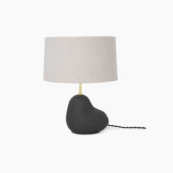 The Hebe Lamp is an organic lamp that can be used on the table or the floor. Initially sculpted by hand, the natural ceramic base contrasts with a more traditional stem and shade. Choose the Off-White or Black base for an earthier feel, or go with the Deep Blue for a more dramatic finish that beautifully reflects the light.