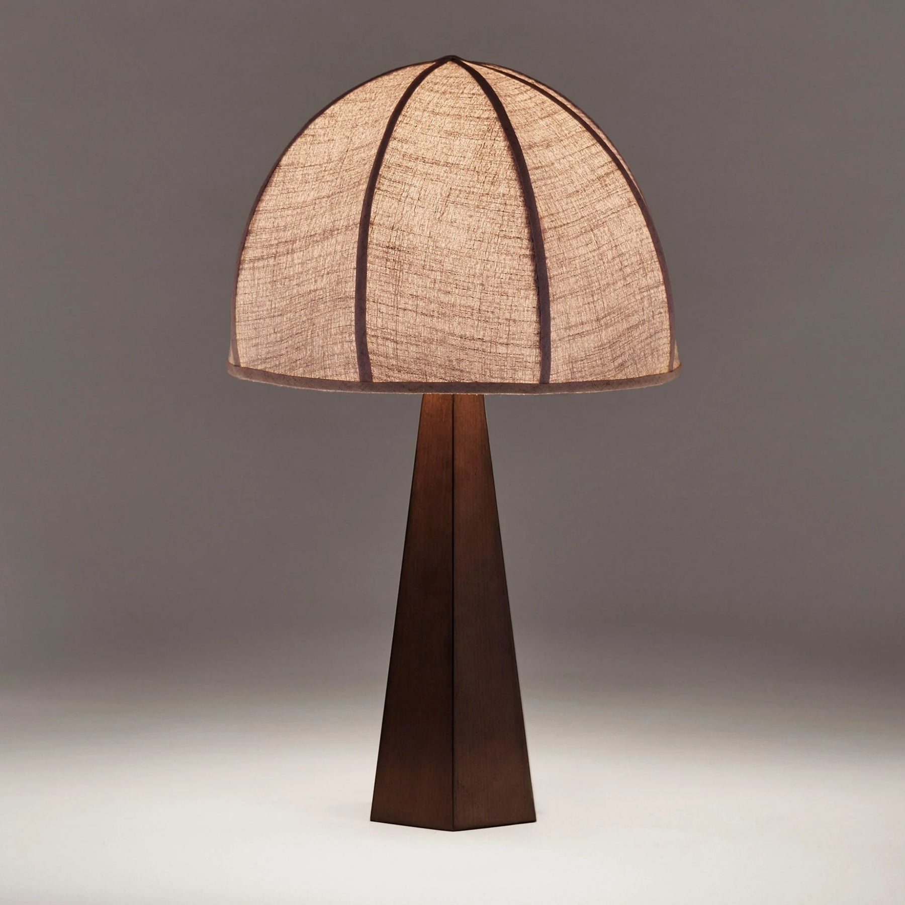 The Hexagon Table Lamp has a base made of dark stained ash veneer. A curved shade in textile sits on top of the wooden base. Hexagon Table Lamp is as good in the living room as it is in the bedroom. Wherever you place it you will add a touch of the 1970s vibe to your home. The hexagon is a common shape in Dusty Deco's designs, we love the idea of styling this table lamp with the hexagon tables in the same serie.