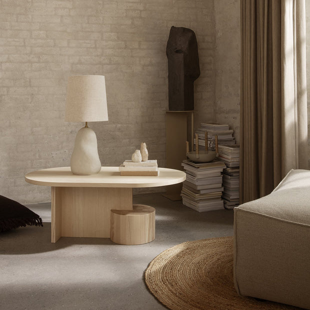 Spec SheetCrafted from solid ash, the Insert Coffee Table is a sturdy yet sculptural piece. Playing with multiple shapes, the oval top rests lightly upon two geometric joints that are anchored by a heavy, cylindrical base. The table is a subtle piece of art in your home that is matched by its functionality as a coffee table.