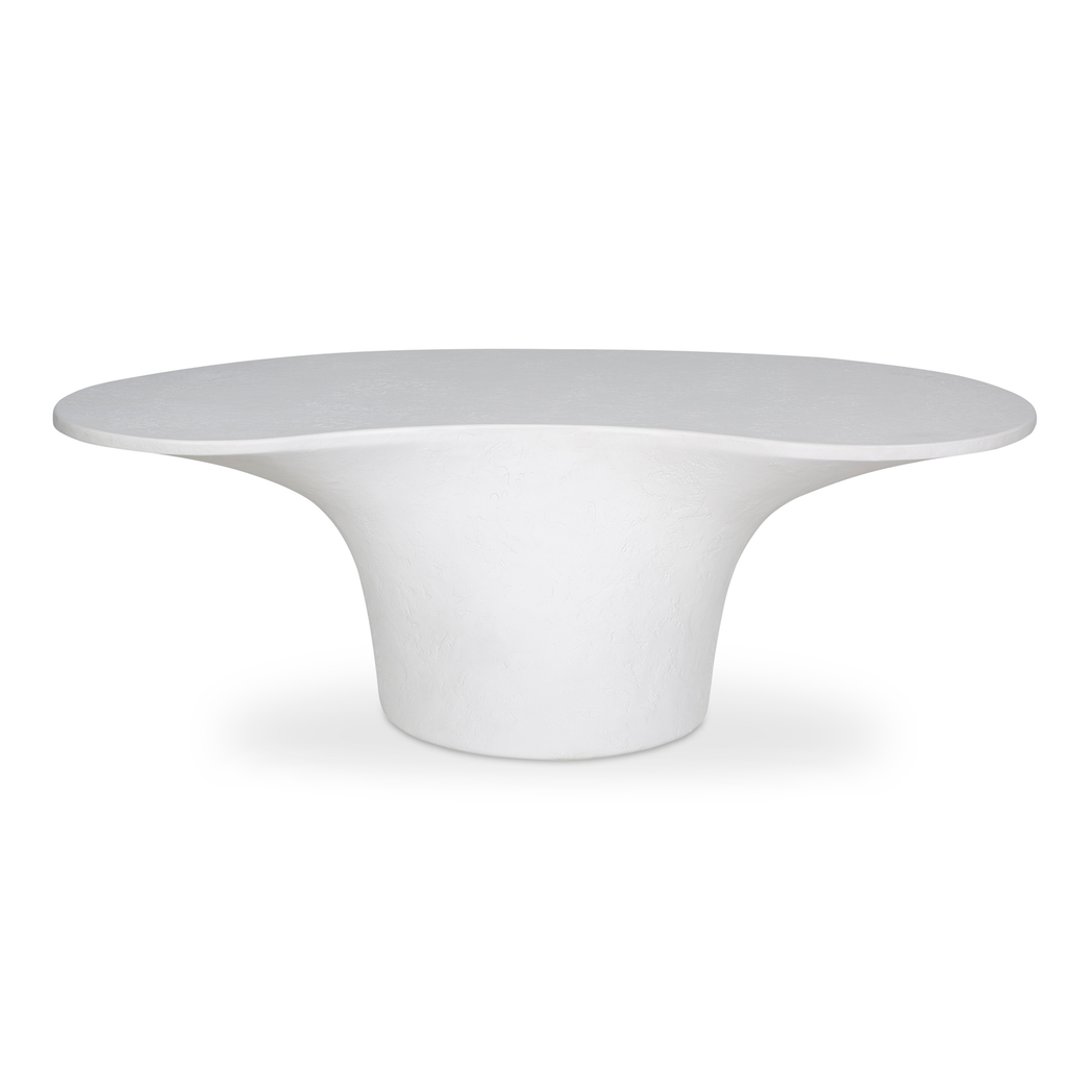 A bold blend of style and stability, the Yumi outdoor coffee table features a freeform top perfectly balanced upon a pedestal-style base for a modern yet grounded look. Crafted from glass fiber-reinforced Concrete that combines cement, glass fiber, and Styrofoam for durability and lightness, its rough texture adds a layer of tactile interest, transforming its contemporary form into a centerpiece of conversation.
