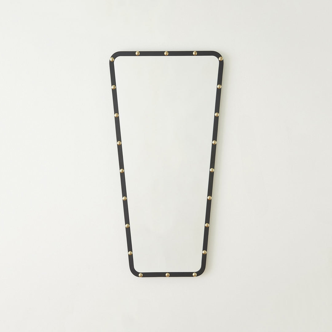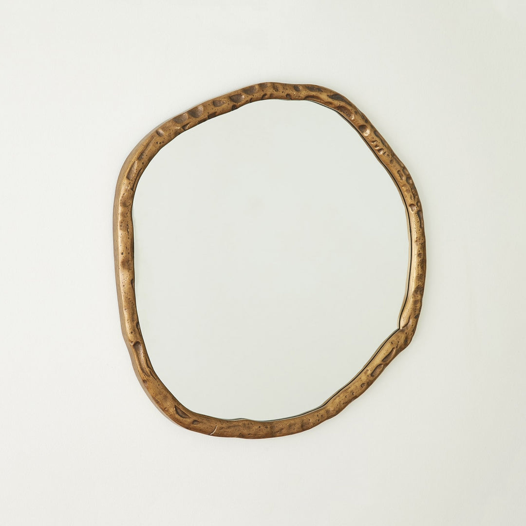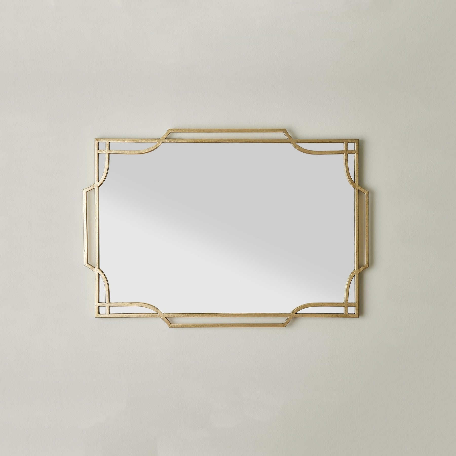 The Modern Aragesque Wall Mirror showcases a sculptural iron frame where clean linear elements converge with soft, flowing curves, all enhanced by a hand-painted gold leaf finish. Designed for versatile styling, it can be installed either vertically or horizontally to adapt to any space.