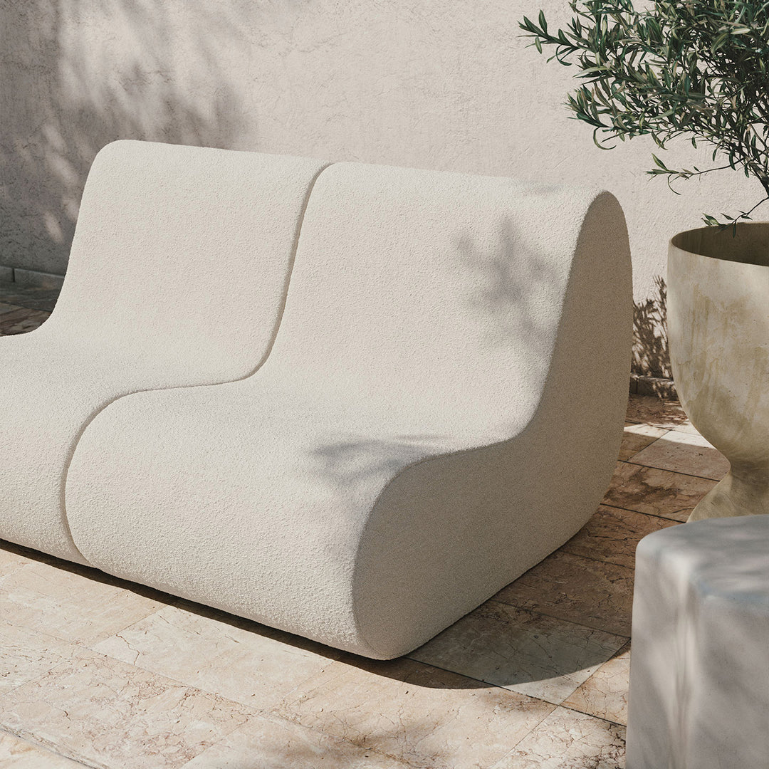 Material: Fabric: Pure Bouclé. 100% polypropylene with waterproof backing made of polyurethane and polyester. Inside: High-resilience PU foam