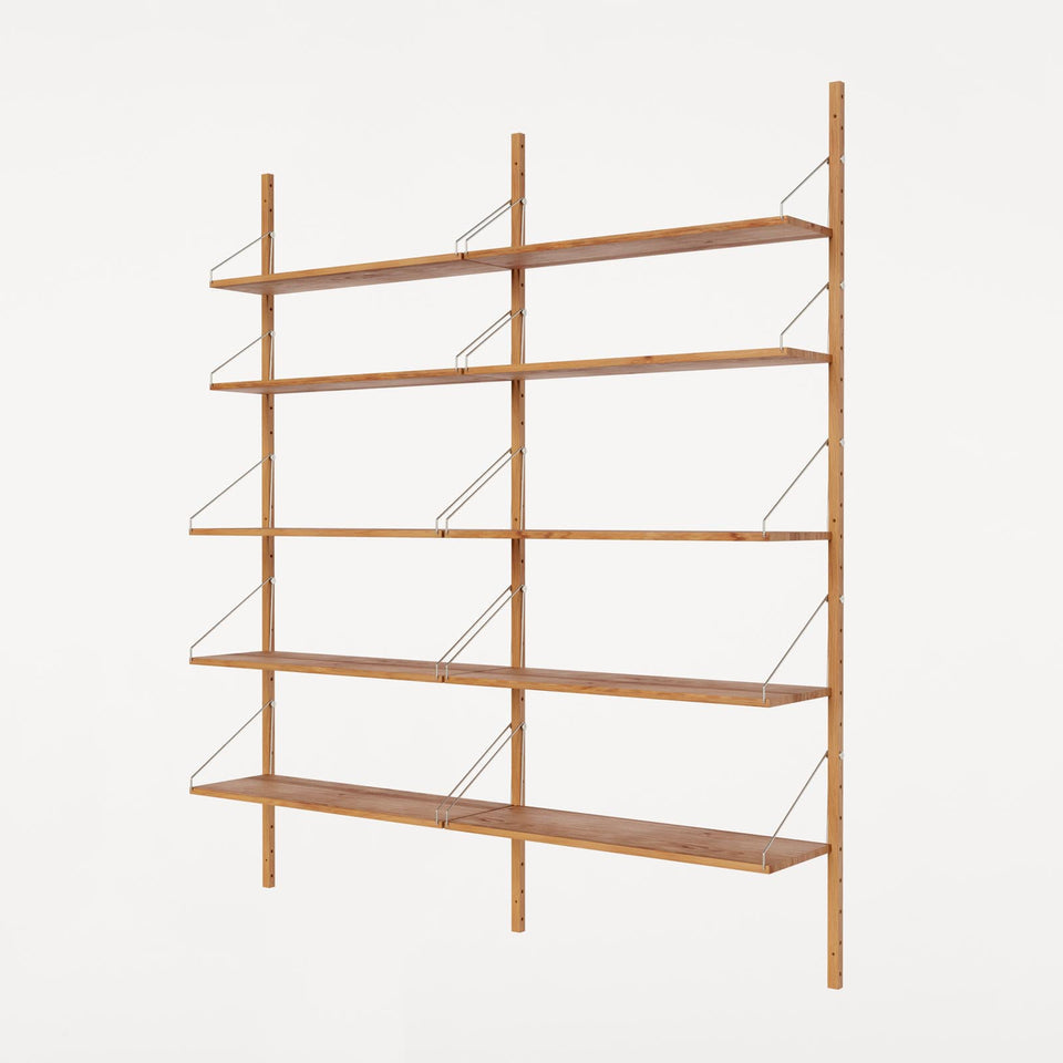 White Oak: White oiled solid oak shelves and rails, Stainless steel brackets and screws