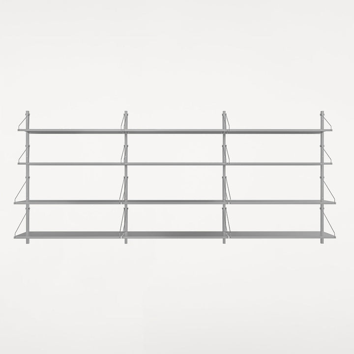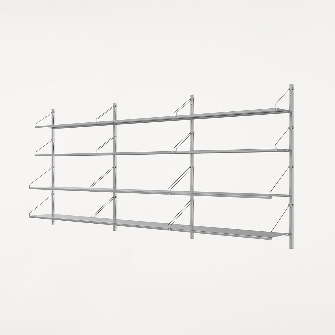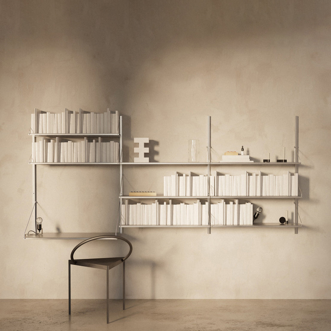 Shelf Library Stainless Steel is a natural extension of Frama’s Shelf Library universe. Characterized by a modular system and fastened with solid steel screws on stainless steel rails, the shelves can be easily placed and re-styled in a variety of ways. This versatile design lends itself to any space, creating a minimal backdrop for your good and objects.