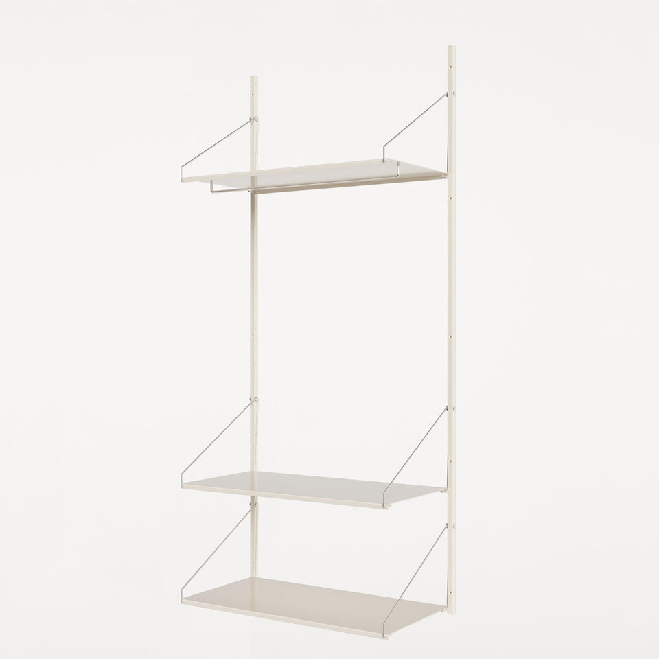 Warm White Steel: Powder-coated steel shelves, powder-coated steel rails, stainless steel brackets and stainless steel screws