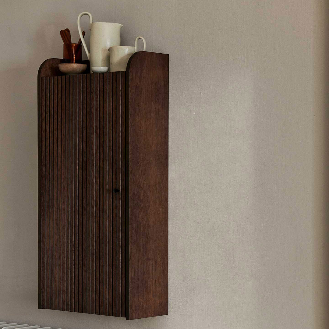 Made from FSC™ Mix certified oak veneer with an MDF core, the Sill Wall Cabinet offers a decorative and multipurpose storage solution. The name Sill stems from the French sillon, meaning carved grooves, which adorn the doors of the wall cabinet.