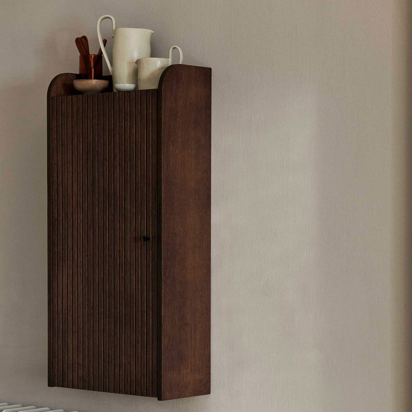 Use the versatile and functional Sill Wall Cabinet throughout your home – for your favourite cups in the kitchen, for your most cherished treasures in the living room or for keys and other miscellaneous items in the hallway.