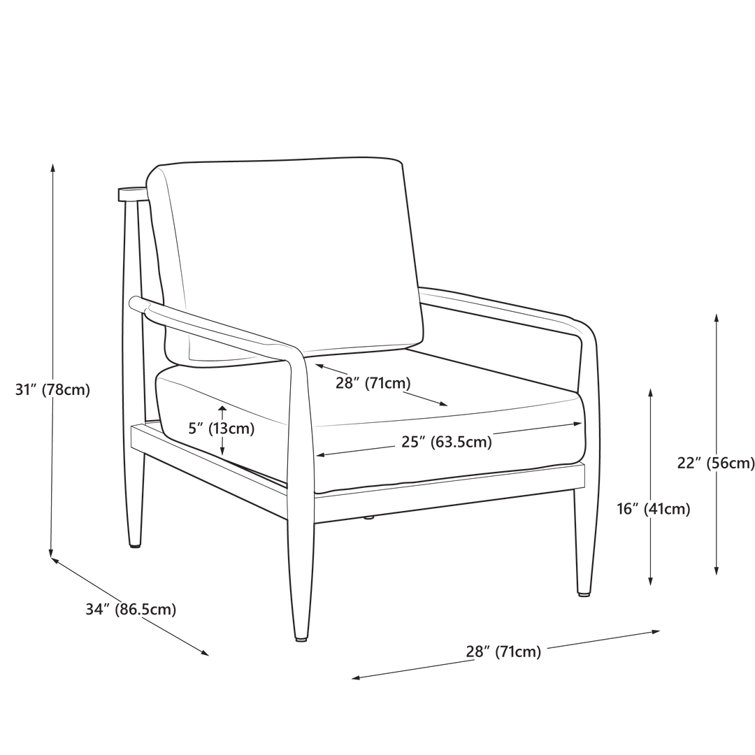 This lounge chair combines clean lines with natural warmth, making it a perfect addition to any living space. Crafted with a solid wood frame, its sleek tapered legs and gently curved arms give it a timeless mid-century look. The plush seat and back cushions are upholstered in soft, neutral fabric for all-day comfort and effortless style. Its minimalist design blends seamlessly with both contemporary and classic interiors. Durable yet inviting, this chair is ideal for relaxing with a book, entertaining guests, or simply unwinding at home.