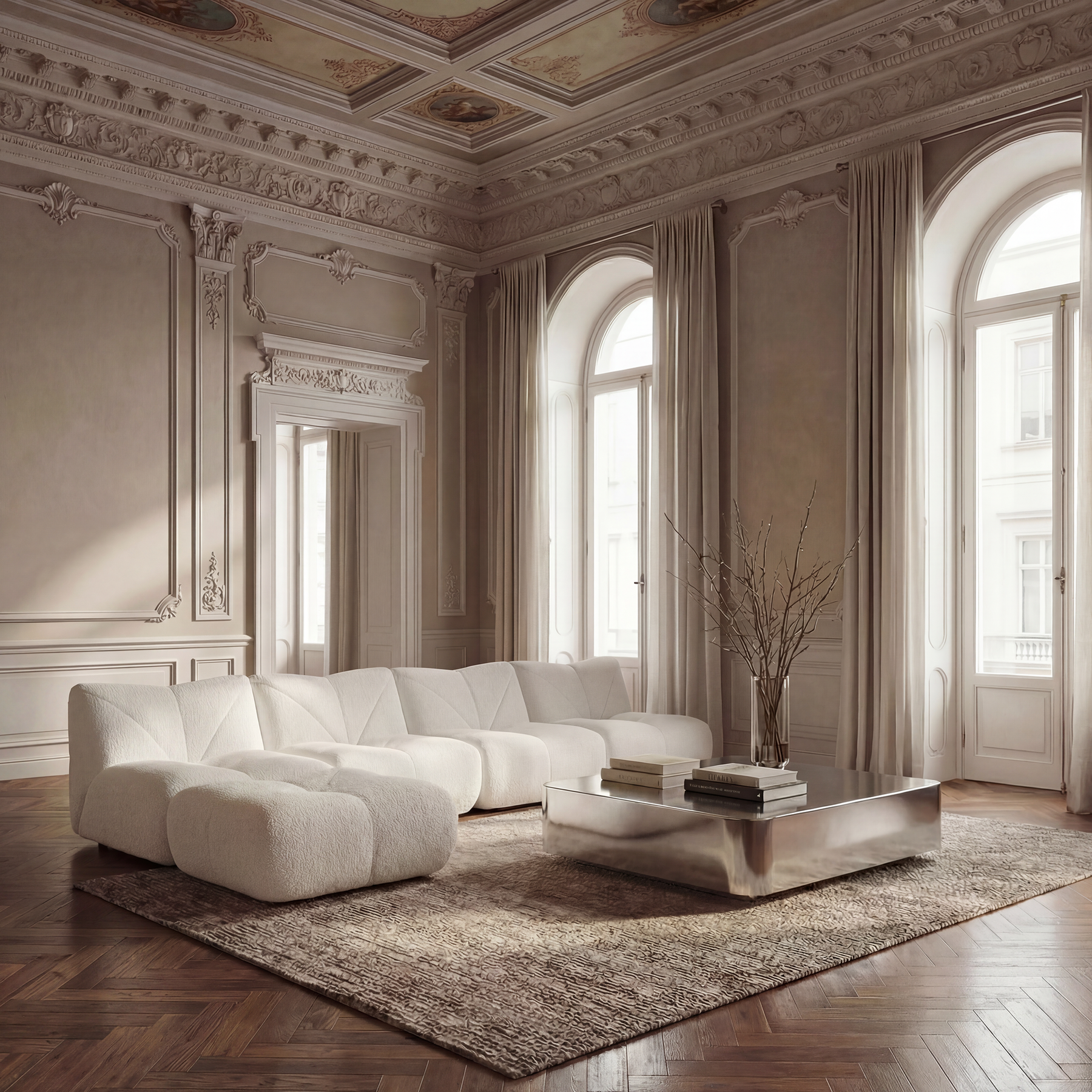 The Specchio Coffee Table is defined by its quiet precision and sculptural clarity. Wrapped in mirror-polished stainless steel, its continuous surface captures light and reflections from the surrounding space, allowing the piece to shift subtly throughout the day while maintaining a calm architectural presence.