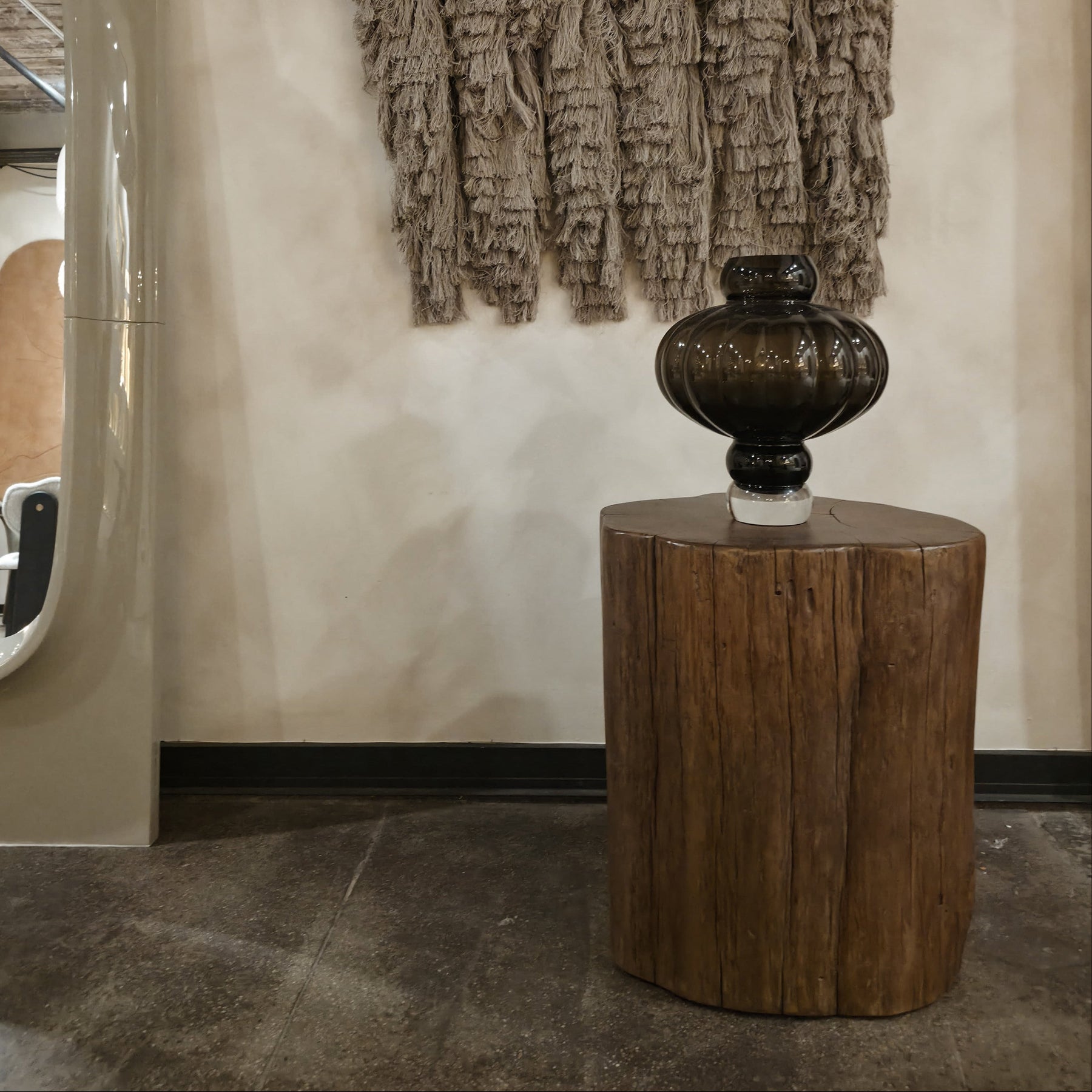 The Teak Live Edge Stump Stool brings the raw beauty of nature to any space. Made from solid teak, it has unique grain patterns and natural imperfections that make it truly one-of-a-kind. Use it as a plant stand, side table, display pedestal, bedside table, stool, or sculptural accent. Its solid form makes it perfect for showcasing vases, art pieces, or décor.