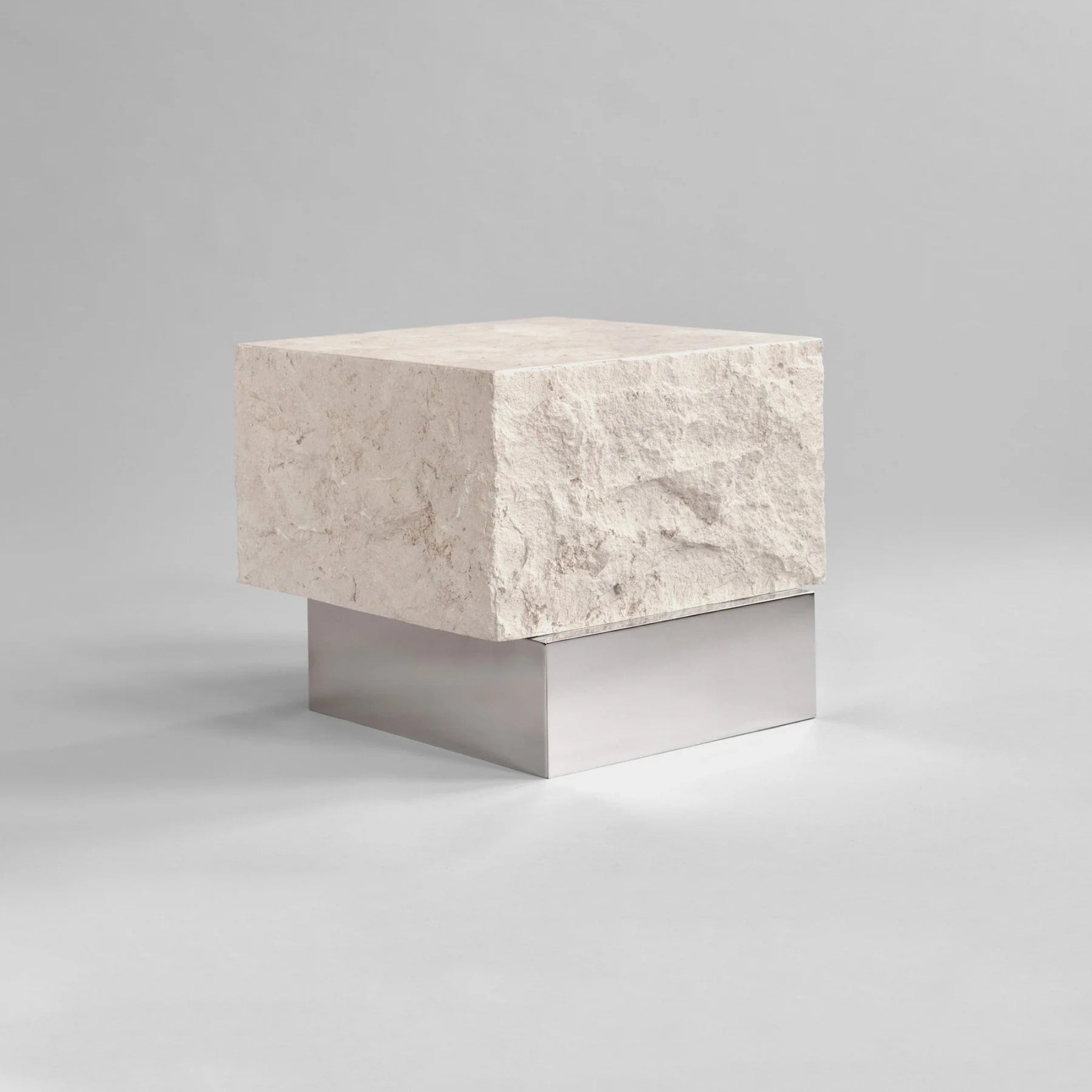 Exuding exceptional craftmanship, the raw finish each side is made by hand carving, while the smooth top surface is polished by machine and afterwards treated with a water-based sealer for improved durability. The combination of materials brings out both visual depth and balance. Available in two sizes, Temple Coffee Tables is a versatile product suitable for use as coffee tables, side tables, or plinths to display objects. The natural stone top retains its unique characteristics, showcasing subtle imperfections that celebrate the beauty of the material.