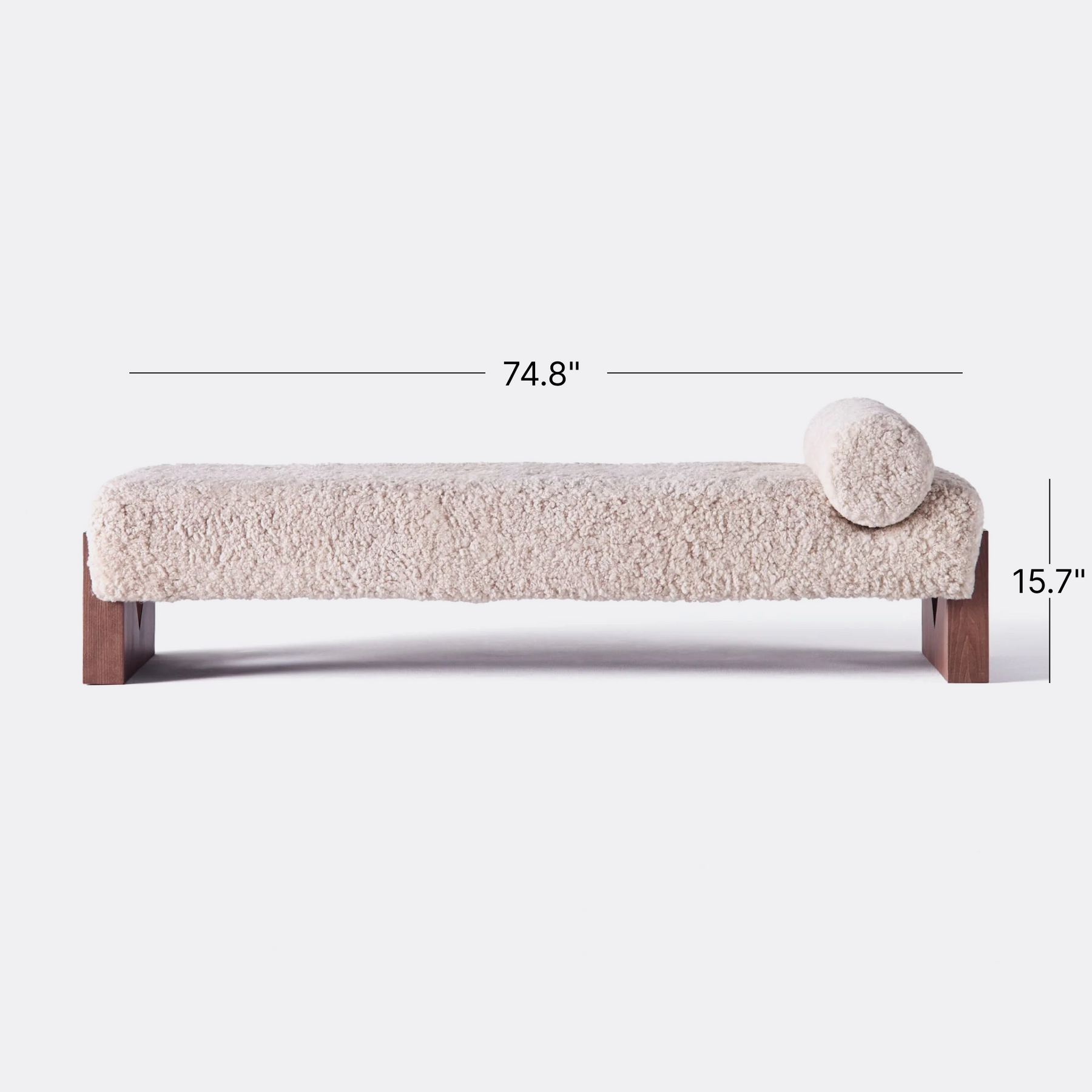 V Daybed Sheepskin is a daybed made by hand by skilled craftsmen with extensive experience in wood and upholstery. The daybed is characterized by its v-shaped legs, an aesthetic signature for several of Dusty Deco's furniture. Both the legs and the frame are made of solid beech that has been stained and waxed to get the right color and feel.