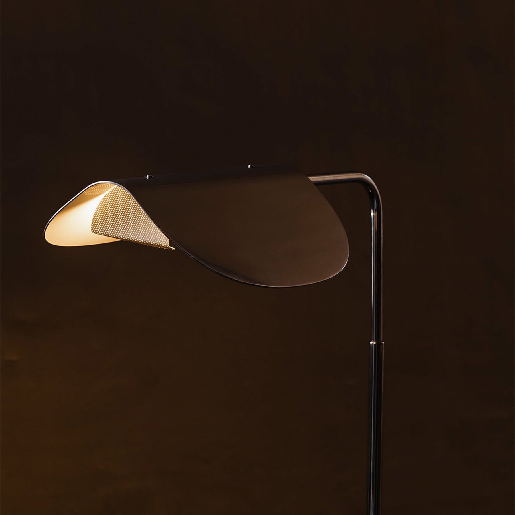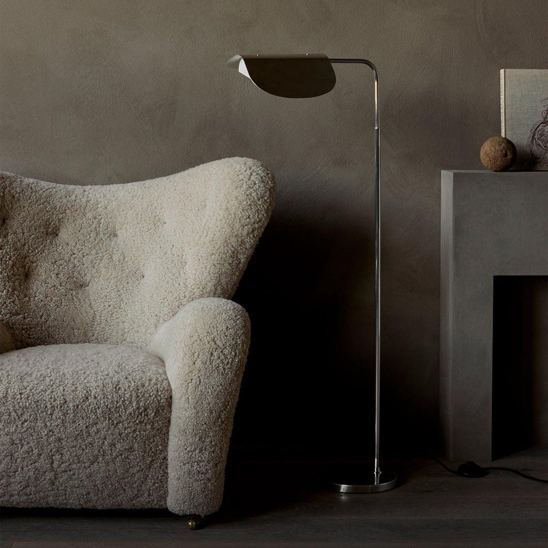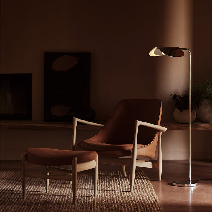 A design with timeless appeal, the modernist and minimal Wing Floor Lamp brings character to any setting thanks to its playful aesthetic. Created in the late 1970s by the award-winning Swedish designer Kenneth Bergenblad, the lamp’s simple idiom brings together past, present and future. Alluding to the wings of a bird, the polished aluminum shade rotates to allow you to direct the light to wherever it is needed and create playful movement on the architectural design.