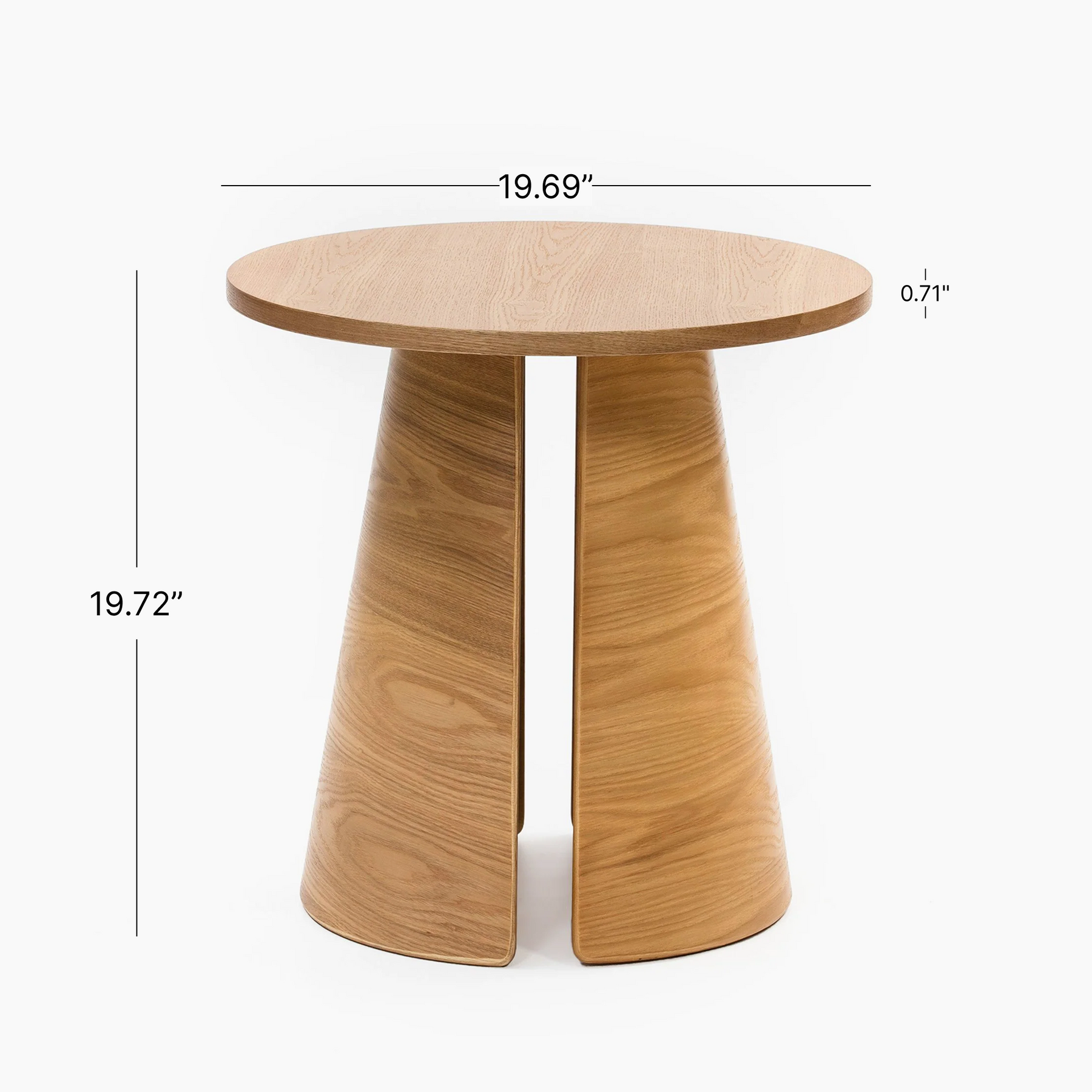 The design of the table is simple, emphasizing the nobility and beautiful properties of the material. It consists of only three parts - two symmetrical curved legs and a round tabletop, the combination of which ensures a stable and eye-catching auxiliary table in a modern space.
